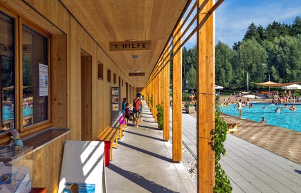 Großzügig angelegten Familienbad mit naturnaher Waldrand-Kulisse. Großes Schwimmerbecken und Sprungturm, Kinderbecken und Planschbecken, Beachvolleyballfelder und Tischtennisplatten. Zur Verpflegung steht ein Biergarten und Kiosk bereit. Ein Highlight ist sicher die 18 Loch Minigolfanlage, die auch an trüben Tagen viel Spaß verspricht.