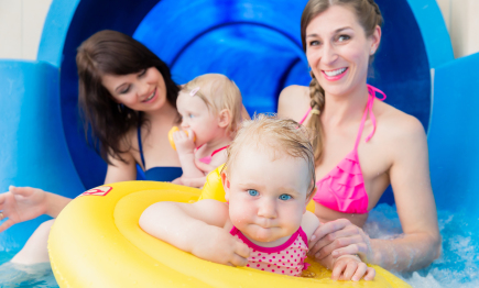 Großes Stadtbad mit vielen Extras, wie einem Kinderbecken, einer 70 m langen Wasserrutsche, einem Wasserfall und einem 10-m-Sprungturm.