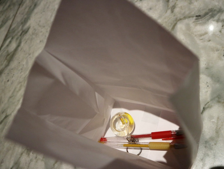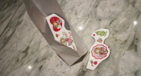 Vor dem Verschließen der Öffnungen befüllen wir die Papierhäuser mit kleinen Geschenken.
