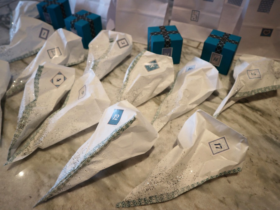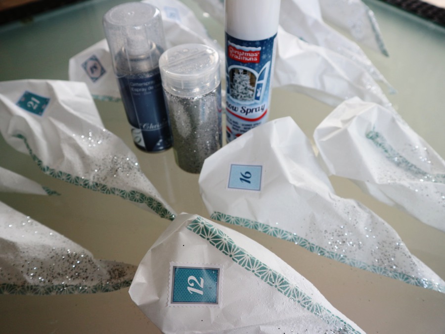 So könnt ihr einen locker leichten Adventskalender ganz einfach aus Brotpapiertüten basteln! Dieser Adventskalender wirkt modern in seinen dezenten grau-blau Tönen und lässt sich super als Weihnachtsecke im Raum dekorieren.