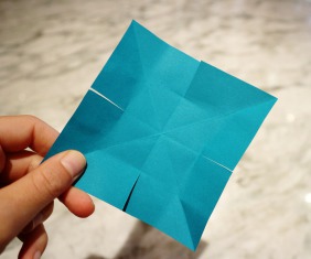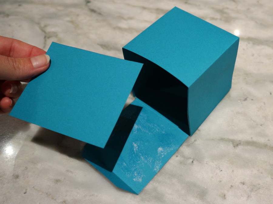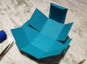 Um den Deckel zu stabilisieren könnt ihr eines der ausgeschnittenen Felder unten dran kleben, die Ränder falten und ebenfalls die Ecken zuschneiden.