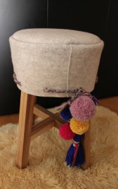 Tipp: Statt der Wollkordel mit den Bommeln und der Quaste kann auch jederzeit eine andere Dekoration an dem Hocker angebracht werden. In der Vorweihnachtszeit zum Beispiel ein rotes Samtband mit Nikolausstiefeln. Wenn ihr Lust habt schickt uns Fotos von euren Hockern und Deko-Ideen.