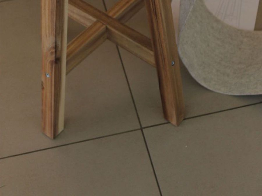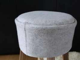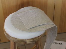 Den Hocker mit der Sitzfläche nach unten auf den Filz legen und den Umfang der Sitzfläche auf den Filz übertragen. Einen Zentimeter rundherum zugeben und den Filz ausschneiden. Ebenso mit dem Schaumstoff verfahren, allerdings ohne Zugabe eines Zentimeters, also das exakte Maß der Sitzfläche ausschneiden.