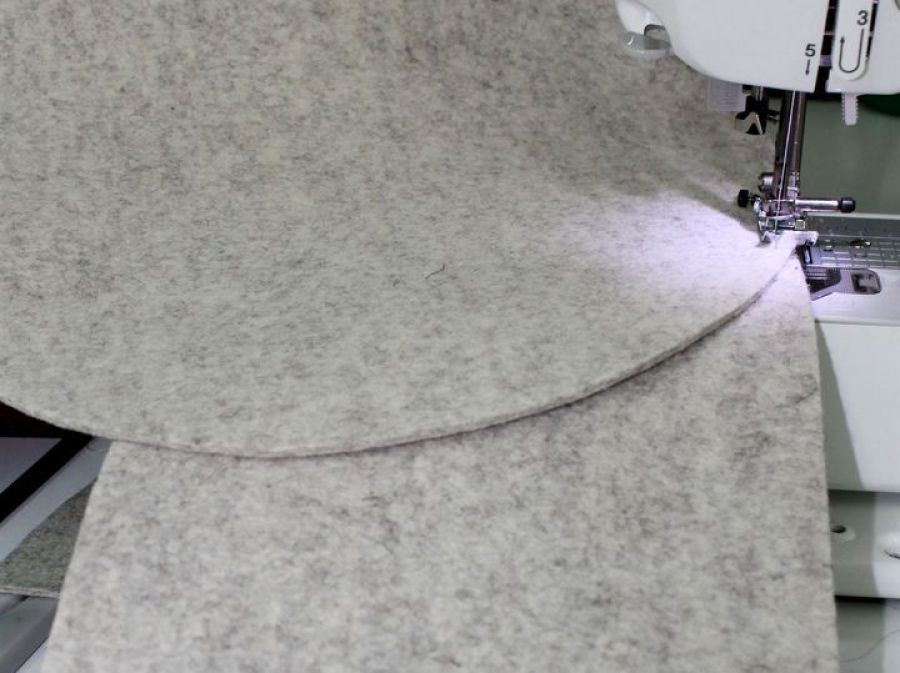 Außerdem ein Filzband zuschneiden das ca. 2cm länger ist als der Umfang des ausgeschnittenen Kreises. Breite dieses Filzbandes ca. 15cm. Bei unserem Hocker beträgt die Länge des Bandes ca. 96cm.
