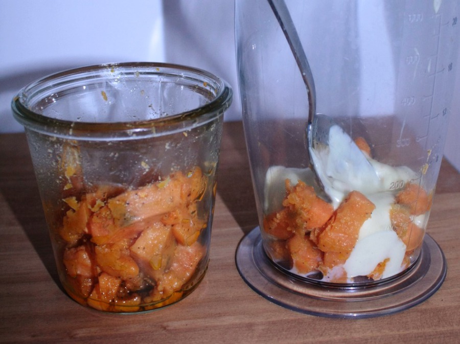 Als Beilage eignen sich – je nach Jahreszeit - alle Sorten von Gemüse, z. B. Spargel, Blattspinat, Paprika, Zucchini oder auch Tomaten. Kinder essen gerne einen Dipp dazu. In unserem Bild sehen Sie eine Mischung aus gebratenen Süßkartoffeln mit Aioli. Weitere Vorschläge wären: Kräuterquark, Avocadocreme, Sauerrahm mit frischen Kräutern oder gehackten Tomaten.