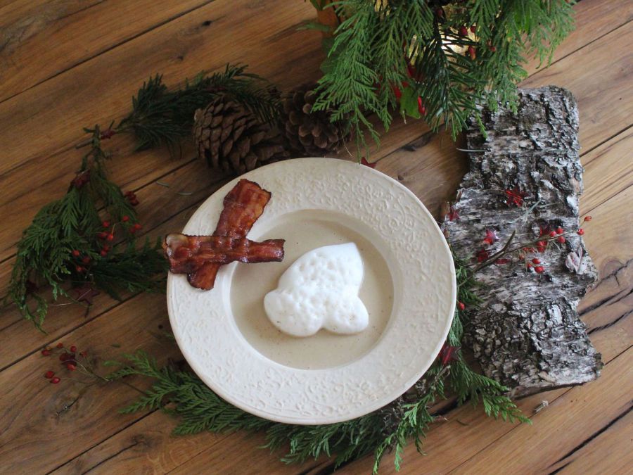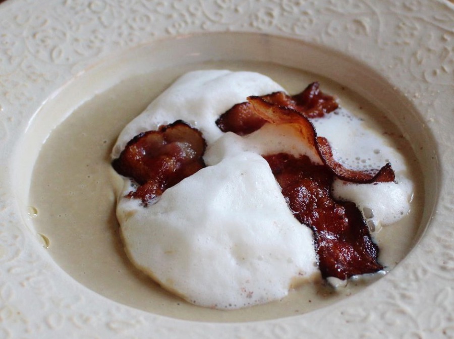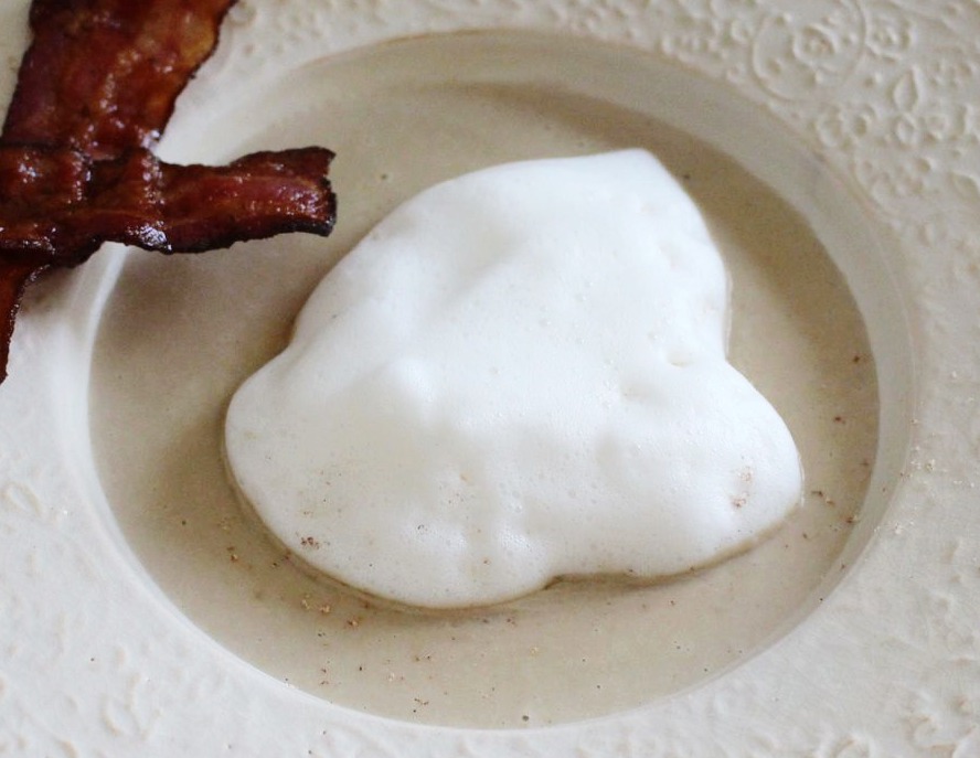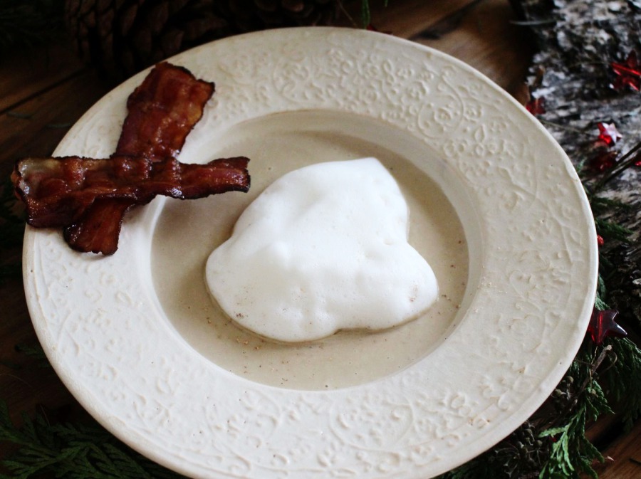 Mit ein wenig Apfelessig und bei Bedarf mit Salz und Pfeffer abschmecken. Zum Garnieren kann ein wenig mit Muskat gewürzte Milch aufgeschäumt werden.