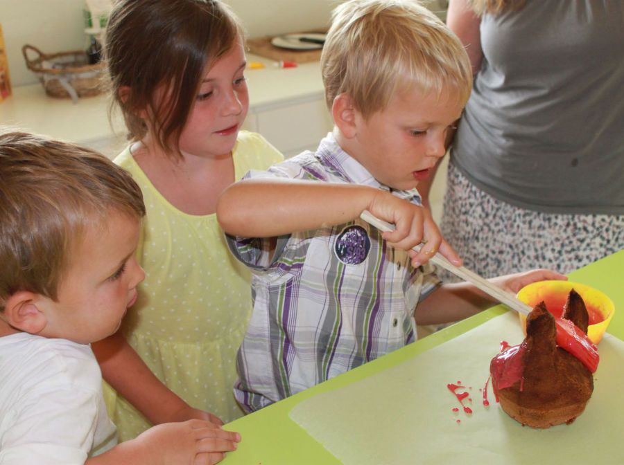 Mit gefärbtem Zuckerguss und Zuckerperlen verzieren...
