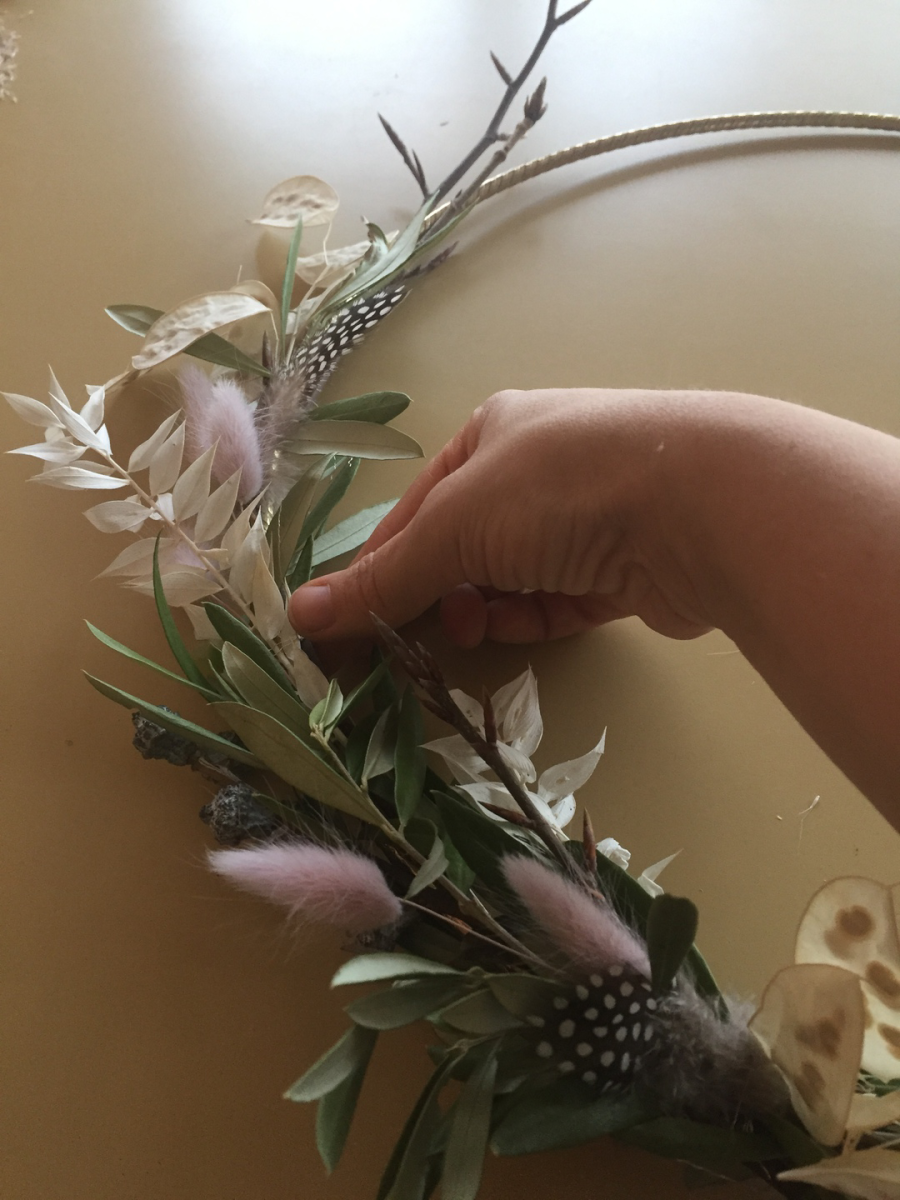 gefragt. Setzt an einer Stelle mehr Trockenblumenbüschel ein, dann wieder mal mehr Federn.
