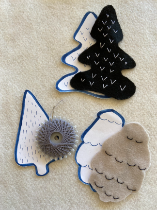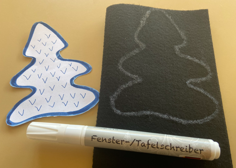 Die Vorlagen herunterladen und die Motive ausschneiden. Alternativ könnt ihr auch eigene Designs entwerfen. Dann jeweils ein Motiv einer Filzfarbe zuordnen. Den Filz doppelt nehmen und die Umrisse des Motivs vorzeichnen und anschließend beide Lagen Filz in einem Zug ausschneiden. Nun habt ihr jedes Motiv zwei Mal, Vorder- und Rückseite eures Aufhängers.